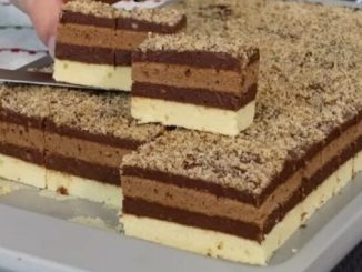 Sastojci: Za koru: 200 g putera 100 g kristal šećera 5 jaja 15 kašika brašna (300 g) 100 ml mleka 2 kašike kako praha Za […]
