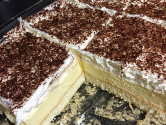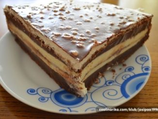 Sastojci BISKVIT: 130g margarina 300g šećera 3 jaja 120ml mlijeka 50g gorkog kakaa 2 žlice čvrstog jogurta 1/2 praška za pecivo 140g brašna 1 vrećica […]