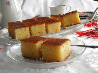 Potrebno je: 3 jaja 1 čaša ( čaša od 2,5 dcl) šećera 1 kesica vanilin šećera 1 čaša ulja 1 čaša jogurta 1 čaša griza […]
