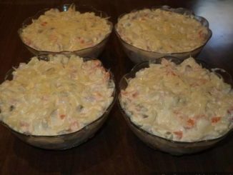 Sastojci 500 gr. testenine150 gr. kackavalja200 gr. sunke2 – 3 obarene sargarepe15 kiselih krastavcica1 kisela crvena paprika ili pecena crvena paprika1 – 1,5 l. jogurta […]