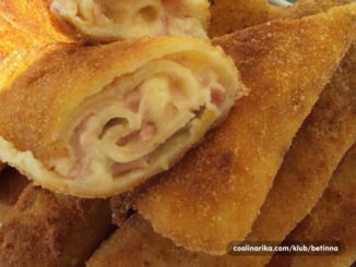 Sastojci 15 palačinki fil 200g šunke 150g gaude 3 trokuta zdenka sira 200ml majoneze 200ml kiselog vrhnja sol i papar 1 jaje smjesa za paniranje […]