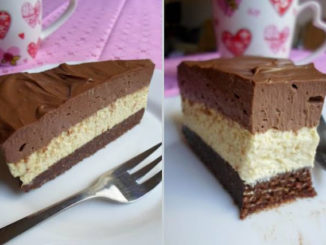 Sastojci: Za prvi sloj: 70 g maslaca, 100 g crne čokolade (70 % kakaa), 1 dl mlijeka, 150 g mljevenih lješnjaka, oko 150 g mljevenog […]