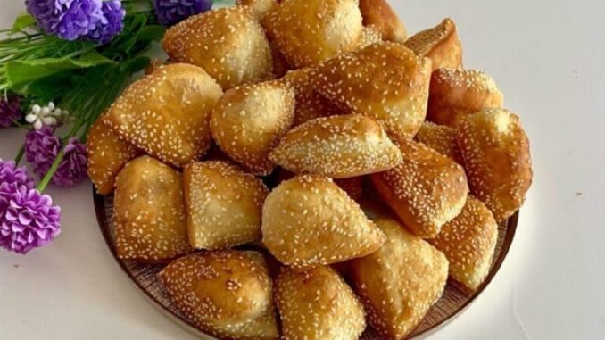 Od tijesta izrežemo komade veličine mandarine i podijelimo ih na jednake komade. Umočimo beze prvo u mlijeko, a zatim u susam.
