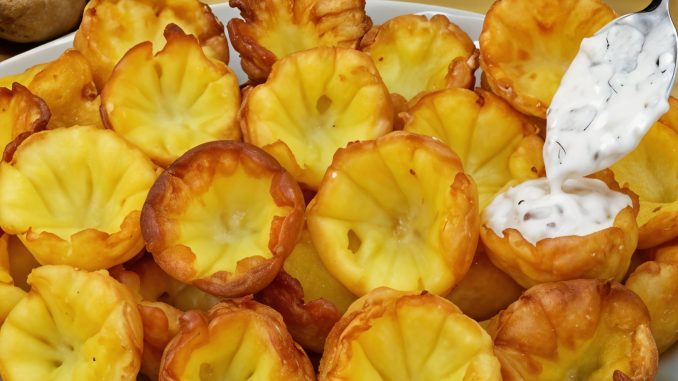 Da biste stvorili oblik krekera, počnite laganim namazanjem rozete sokovnika za limun ili sličnog rebrastog kalupa. Svaku kuglicu krumpira treba čvrsto pritisnuti na nauljenu ružicu, pazeći da se oblikuje tanjir s unutarnjim rebrima. Ovaj poseban korak je bitan za prenošenje prepoznatljive teksture krekerima i omogućuje im da se privlačno napuhnu tijekom procesa prženja.